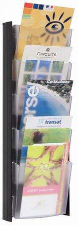 Prospektustartó modern designban A4-es dokumentumok bemutatására. -beltéri használatra -ideális a bejáratnál, kiállító helyeken elhelyezett tájékoztatókhoz -műanyag -álló A4-es dokumentumokhoz -átlátszó színben -bővíthető 6 kg teherbírásig -2 rekeszes -külső méret: 247x360x100 mm (szé x ma x ho) -belső méret: 247x360x23 mm (szé x ma x ho) Itt megtekinthető és let