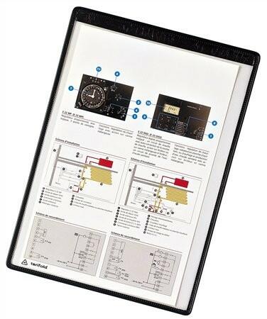 A bemutatótábla kiemelkedő minőségének köszönhetően flexibilis, strapabíró és rendkívül hatékony. A kétoldalú bemutatótábla a Tarifold tartókba tervezett prezentációs rendszerek részét képezi. A táblák műanyaggal bevont, acélhuzal kerete tartós és egyben rugalmas tartást eredményez. A tábla a fém forgócsapoknak köszönhetően a tartókba könnyen behelyezhető