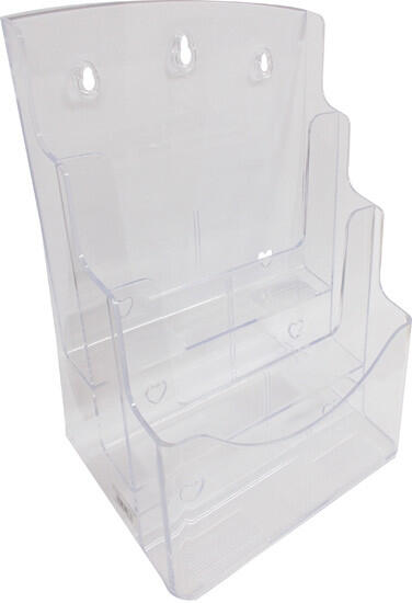 Prospektustartó a szóróanyagok, újságok rendezésére és rendszerezésére. Office Art prospektustartó, A/4, asztali és falra helyezhető, 3 rekeszes. Asztalra és falra helyezhető víztiszta katalógustartók különböző méretben és tárhellyel. Ideális irodában, vásárlótérben szóróanyagok kihelyezésére.