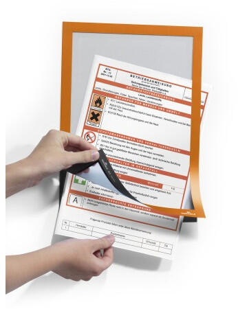 Infokeret DURABLE DURAFRAME® A4 XXL csomag, 10 db /doboz, narancssárga DURAFRAME® keret, öntapadó hátlappal és mágneses előlappal többféle méretben. A DURAFRAME® segítségével profin és kényelmesen helyezhetjük ki dokumentumainkat. Egyszerűen vegyük le a védőfóliát és ragasszuk fel az öntapadó keretet bármilyen sima, kemény felületre, például ablakra, iratszekrényr