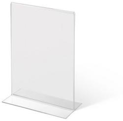 T alakú pultos prezentációs állványok plexiüvegből. Alkalmas állványként éttermi menükre. Álló tájolás. Kétoldalas nézet.