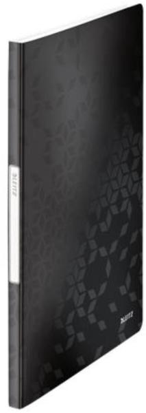 Bemutatómappa, 20 zsebes, A4, LEITZ Wow, fekete (E46310095) - kiváló minőségű PP iratvédő mappa ragyogó WOW színekben - ideális dokumentumok prezentálásához, rendszerezéséhez - 20 áttetsző, a gerinchez rögzített tasak - gerinccímke a tartalom könnyű beazonosításához - illik a "Wow" gumis mappába, bármely standard iratpapucsba vagy irattálcába - 40 A4 lap kapacitás (2