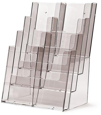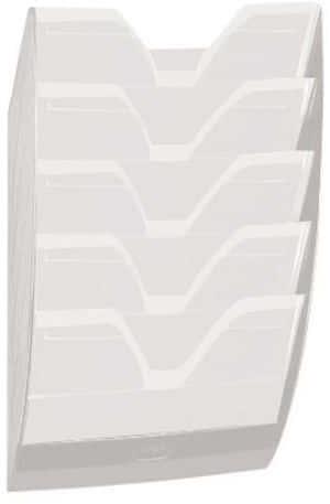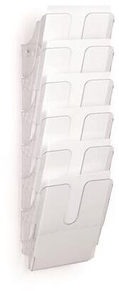 Prospektustartó A4-es méretű dokumentumokhoz asztali és fali kivitelben is. -beltéri használatra -ideális recepciós pultok, bemutatótermek vagy várótermek információs anyagaihoz -műanyag -álló A4-es dokumentumokhoz -áttetsző színben -bővíthető 6 kg teherbírásig -töltési kapacitás 24 mm -formátum: A4-C4 -5 rekeszes -szett tartalma: 5 tálca, 2 tartóelem, 1 előlap -aszt