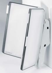 - a T-office fali tartó 10 db bemutatótáblával felszerelve kapható - a bemutatótáblák műanyag bevonatú acélhuzal kerettel, tükröződésmentes, újrahasznosítható polipropilénből készülnek - a bemutatótáblák egy erős műanyag forgórésszel ellátva illeszkednek a falitartóba - a bemutatótáblák könnyedén ki- és bepattinthatóak - a falra szerelve ideális dőlésszöge