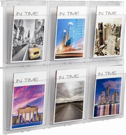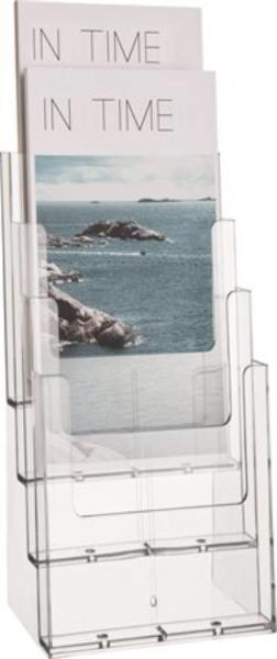 Prospektustartó modern designban A4-es dokumentumok bemutatására. -beltéri használatra -ideális a bejáratnál, kiállító helyeken elhelyezett tájékoztatókhoz -műanyag -álló A4-es dokumentumokhoz -áttetsző színben -bővíthető 6 kg teherbírásig -6 rekeszes -külső méret: 247x1080x100 mm (szé x ma x ho) -belső méret: 247x1080x23 mm (szé x ma x ho) Itt megtekinthető és le