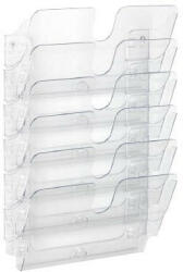 Prospektustartó modern designban A4-es dokumentumok bemutatására. -beltéri használatra -ideális a bejáratnál, kiállító helyeken elhelyezett tájékoztatókhoz -műanyag -álló A4-es dokumentumokhoz -áttetsző színben -bővíthető 6 kg teherbírásig -6 rekeszes -külső méret: 247x1080x100 mm (szé x ma x ho) -belső méret: 247x1080x23 mm (szé x ma x ho)Itt megtekinthető és let