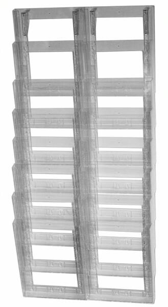 A4-es prospektusokhoz, 16 rekeszes. Belső méret: 223 x 32 mm.