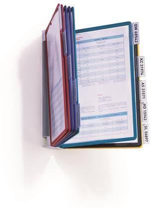 Teljes fali bemutatótáblatartó szett. -fém tartó -10 db A4 méretű SHERPA®, könnyen cserélhető panellel -polipropilén panelek színes kerettel és tükröződésmentes, fénymásolható fóliával -vegyes színben, mely lehetővé teszi a dokumentumok színregiszteres tárolását -az indexfülek könnyen feliratozhatók -5 év garancia -külső méret: 390x325x260 mm (szé x ma x ho) I