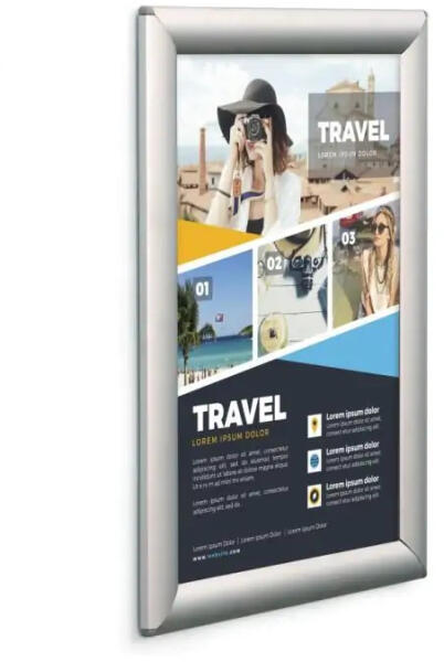 Plakátkeret Opti Frame technológiával. Ideális választás kis méretű poszterekhez és marketing anyagokhoz. Ez a hagyományos, alumínium plakátkeret tökéletes választás A4 poszterek , menük, árkiírások és marketing anyagok stílusos kihelyezésére. Elegáns kialakítása hozzájárul az egységes cégarculat megteremtéséhez. Az Opti Frame egy szabadalmaztatott, innovatív tech