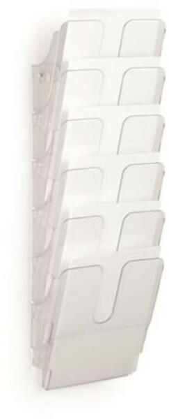 Prospektustartó, fali, álló, A4, DURABLE FLEXIPLUS 6, áttetsző (DB1700008401) Prospektustartó modern designban A4-es dokumentumok bemutatására. -beltéri használatra -ideális a bejáratnál, kiállító helyeken elhelyezett tájékoztatókhoz -műanyag -álló A4-es dokumentumokhoz -áttetsző színben -bővíthető 6 kg teherbírásig -6 rekeszes -külső méret: 247x1080x100 mm (szé x