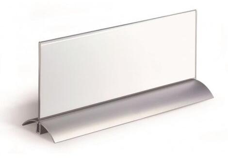 Stílusos asztali névtábla alumínium talppal. Az egyedi rögzítési rendszer megakadályozza, hogy a névcímke magától vagy nemkívánatos módon kinyomódjon. Mindkét oldalról leolvasható. Ideális konferenciákra, találkozókra vagy olyan helyekre, ahol az ügyfelekkel beszélgethet. Méretek: 105 x 297 mm