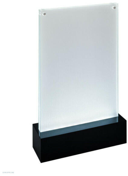 2 db AA 1,5V elemmel működik. Az elem nem tartozék. Asztali laptartó LED világítással, kétoldalas, akril anyagból készült, felül átlátszó, alul fekete. .