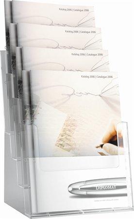 - szórólapok, információs anyagok egyszerű és látványos bemutatására - döntött forma a könnyebb láthatóság érdekében - egyoldalas bemutatásra alkalmas - kristálytiszta akril anyag - a lapok oldalról becsúsztathatók