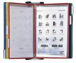 Fali tartók áttetsző információs táblákkal. Alkalmas olyan helyeken történő használatra, ahol több dokumentumot kell kis helyen láthatóvá tenni. A tartó RAL 7035 színű lakkozott fémből, a zsebek polivinil-kloridból készülnek fekete, piros, sárga, zöld és kék színben.