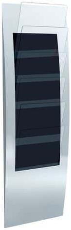 Prospektustartó modern designban A4-es dokumentumok bemutatására. -beltéri használatra -ideális a bejáratnál, kiállító helyeken elhelyezett tájékoztatókhoz -műanyag -fekvő A4-es dokumentumokhoz -áttetsző színben -bővíthető 6 kg teherbírásig -6 rekeszes -külső méret: 340x750x100 mm (szé x ma x ho) -belső méret: 340x750x23 mm (szé x ma x ho) Itt megtekinthető és let