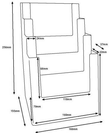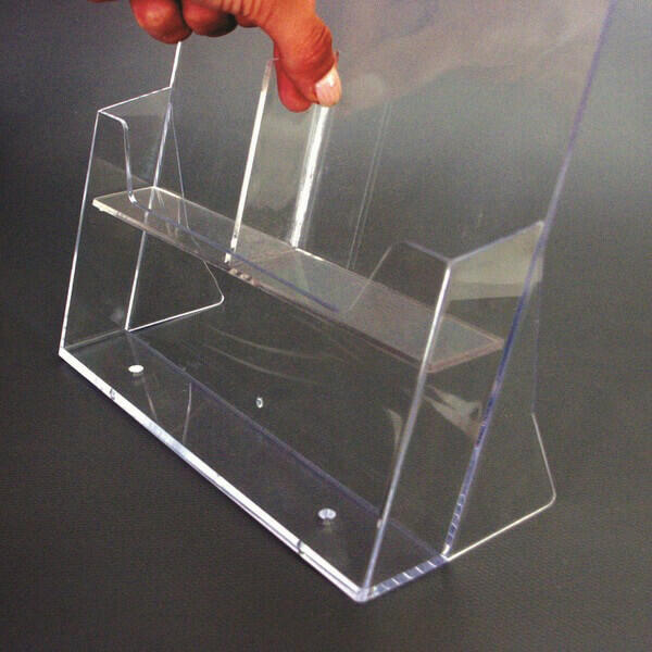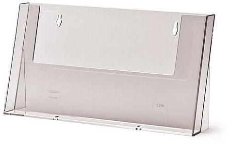 Plexi állvány szórólapokra, brosúrákra, reklámanyagokra stb. Egy fekvő tájolású zseb A4 formátumra vagy álló A3 formátumra. Falra rögzíthető. Az állvány alapkivitelben nyomat nélkül kerül szállításra.