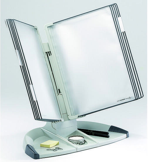 A bemutatótáblák műanyag bevonatú acélhuzal kerettel, tükröződésmentes, újrahasznosítható polipropilénből készülnek. A bemutatótáblák egy erős műanyag forgórésszel ellátva illeszkednek az asztali állványba. A bemutatótáblák könnyedén ki- és bepattinthatóak. Az asztali állvány ideális dőlésszöget biztosít a táblákban elhelyezett iratok olvasásához, és e