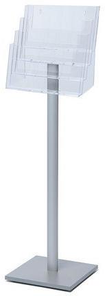Brosúra tartó állványok stabil alumínium szerkezettel. A brosúrák bemutatására négy plexiüveg rekesz szolgál. Profilszélesség 25 mm, hosszú állvány élettartam.