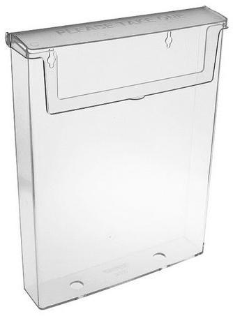 Szórólapok, információs anyagok egyszerű és látványos bemutatására szolgáló eszköz. -döntött forma a könnyebb láthatóság érdekében -egyoldalas bemutatásra alkalmas -kristálytiszta akril anyag -a lapok oldalról csúsztathatók bele
