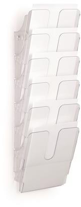 Prospektustartó modern designban A4-es dokumentumok bemutatására. -beltéri használatra -ideális a bejáratnál, kiállító helyeken elhelyezett tájékoztatókhoz -műanyag -álló A4-es dokumentumokhoz -áttetsző színben -bővíthető 6 kg teherbírásig -6 rekeszes -külső méret: 247x1080x100 mm (szé x ma x ho) -belső méret: 247x1080x23 mm (szé x ma x ho) Itt megtekinthető és le