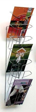 Prospektustartó modern designban. A4 méretű információk bemutatására. 6 db A4 álló részből áll. Méret: 745 x 247 x 100 mm (M x SZ x H) A FLEXIPLUS egy modern formát kölcsönző prospektustartó. A4 és A5 méretekbenn. 23 mm-es töltési kapacitással. A rendszer 6 kg teherbírásig bővíthető. Ideális megoldás recepciókon, bemutatótermekben, várókban és kiállításokon is
