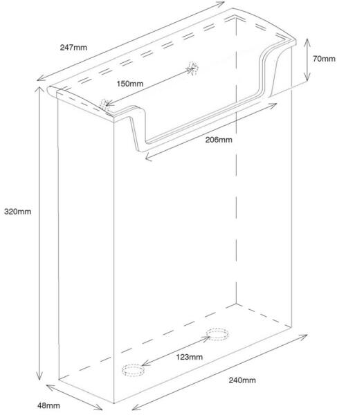Kültéri. A4-es prospektusokhoz. Belső méret: 305 x 220 x 30 mm.