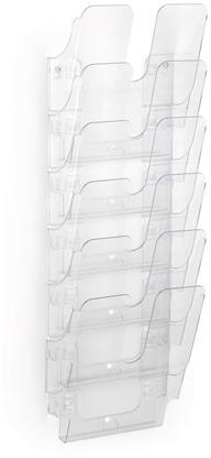 Prospektustartó modern designban A4-es dokumentumok bemutatására. -beltéri használatra -ideális a bejáratnál, kiállító helyeken elhelyezett tájékoztatókhoz -műanyag -álló A4-es dokumentumokhoz -áttetsző színben -bővíthető 6 kg teherbírásig -6 rekeszes -külső méret: 247x1080x100 mm (szé x ma x ho) -belső méret: 247x1080x23 mm (szé x ma x ho) Itt megtekinthető és le