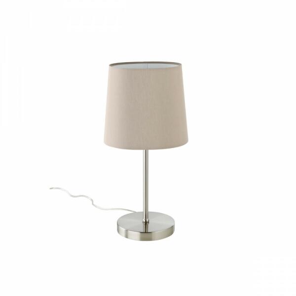 Nikkel színű fém vázas asztali lámpa, bézs színű, tűzálló bevonatos, 22cm széles, 20cm magas, ovális textil lámpaernyővel. A lámpacsalád több színű vázzal és ernyővel elérhető. Ezek megtekintéséhez írja be a Piccadilly nevet a keresőbe.