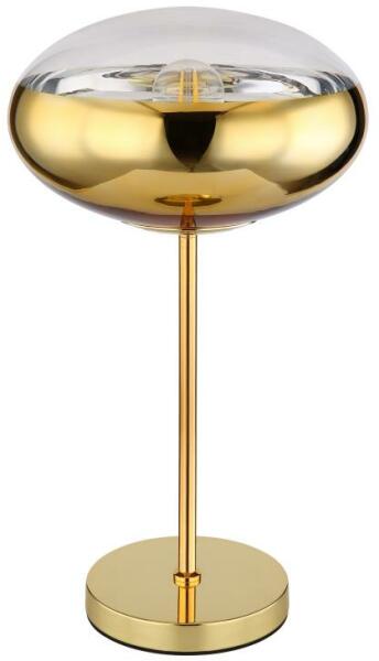 Asztali lámpa arany fém talppal és üveg arany dekoros búrával. Ø:300, H:530, exkl. 1xE27 60W 230V Használt feszültség: 230V Fényforrás teljesítménye (Watt): 60W Fényforrás foglalata: E27 Foglalatok száma: 1 Átmérő: 300mm Magasság: 530mm Szállítási idő: Átlagosan 1,5-2 hét, a visszaigazolástól függően.