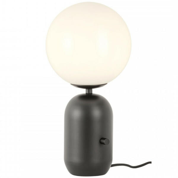 Asztali lámpa fém fekete matt, bronz színű üveg búra, belül fehér, fekete PVC kábel, billenőkapcsoló a kábelen, ø: 150mm, M: 170mm, kábel hossza 1500mm, 1x E27 25W 230V izzó nélkül