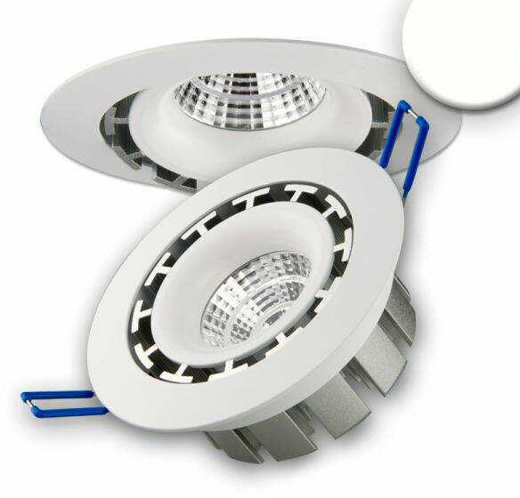 Süllyesztett COB LED lámpatest, 15W, 1300lm, 4000K természetes fehér, 45°, IP20, CRI80, fehér, fényerőszabályozható