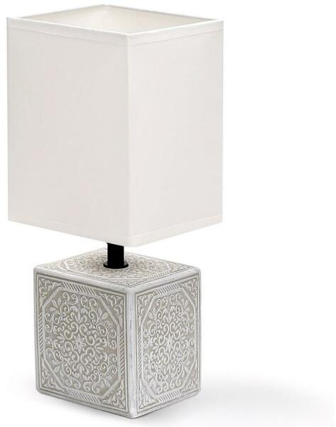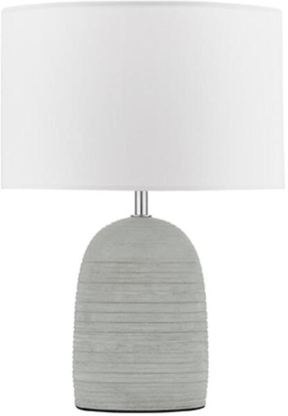 "Az Nova Luce Chempo modern stílusú, szürke-fehér színű asztali lámpa, cserélhető fényforrással. A szövet ernyő fehér, átmérője 25 cm. A lámpa teljes magassága 35 cm. A lámpatest betonból készült. Fekete dugvillás vezetékén található a billenő kapcsoló. Milyen a lámpa fénye?Ez az asztali lámpa a választott fényforrástól függően alkalmas kiegészítő világí