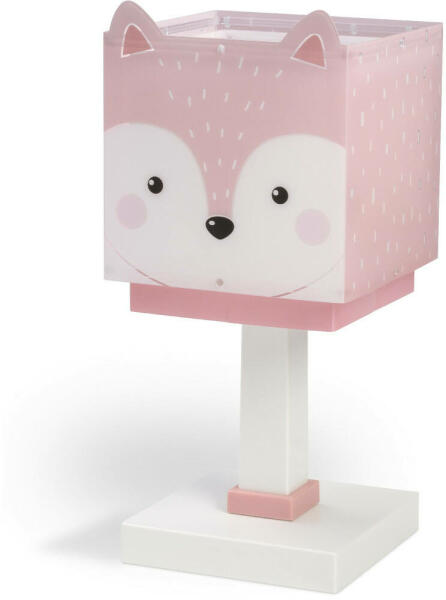 Róka dekoros gyerek szobába illő lámpa az állatok szerlmeseinek. A lámpa fehér színű műanyag vázzal, belül rózsaszín, kívűl szintén rózsaszín róka dekoros műanyag búrával rendelkezik. A lámpához vezetkére szerelt kapcsoló tartozik.