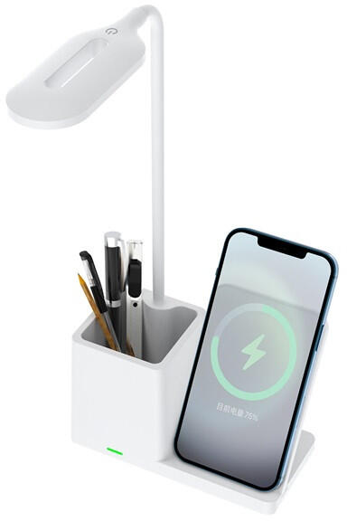 S-Link Asztali lámpa -SL-M9054 (Wireless töltő 10W, fehér) Technical Specitication Output Power : 10 W Input Power: 18W max. Input Voltage : 5V/ 9 V (QC) Lamp Power : 200 mWx 10 Charging Efficiency : 700/0 - Luminance : 18-26 Lm x 10 Dimension : 84 x 152 x 318 MM