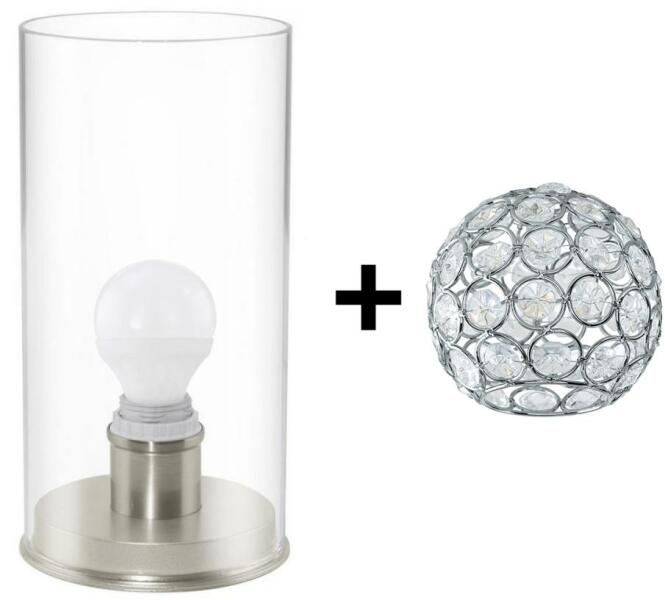 Láncokkal díszített asztali lámpa, fém lámpatesttel, fehér színű lámpaernyővel. A lámpa E27 foglalattal, cserélhető fényforrással került kialakításra. A lámpa fényforrást nem tartalmaz...