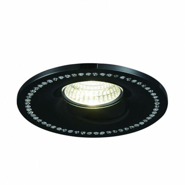 Dekoratív beépíthető lámpa alumíniumból. A lámpatestet kör alakban kristályok díszítik. Kivágási átmérője 7cm, magassága szerelvények nélkül 2,5cm. Fényforrást nem tartalmaz.