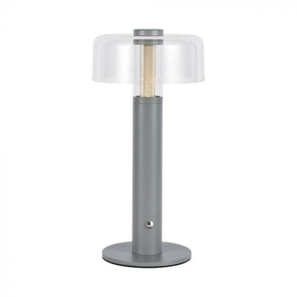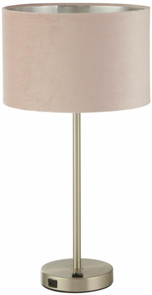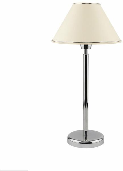 Asztali lámpa textilből készült ernyővel és fém talppal. Alkalmas LED E27 fényforrásokhoz.