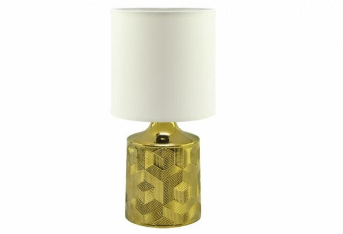 Design asztali lámpa. E14 foglalattal rendelkezik, maximum 25 Wattos LED izzó rakható bele. Kapcsolóval rendelkezik. A hálózati kábel hosszúsága 150 cm. Beltéri használatra javasolt, vizállósági szint IP20. Cserélhető fényforrás típusa E14 Felhasználási terület Nappali Szín Arany Feszültség 220-240 V. Vízállósági szint IP20 Hosszúság 150 mm. Szélesség 150 mm. Magas