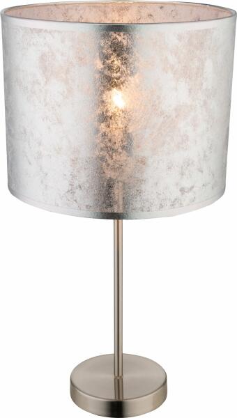 Asztali lámpa nikkel matt, textil ezüst , mérete: D:260, H:500, 1xE27 60W 230V