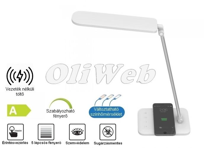 Asztali LED lámpa 16W Fényerő-szabályozható változtatható fényű fehér asztali lámpa vezeték nélküli töltővel V-TAC 8519 Az asztali LED lámpák egyszerű és kompakt megoldást kínálnak helyi világítások kialakítására asztali munkához, tanuláshoz, olvasáshoz. Ez az asztali lámpa a talapzatában elhelyezett wireless (vezeték nélküli) töltő segítségével a ráhelye