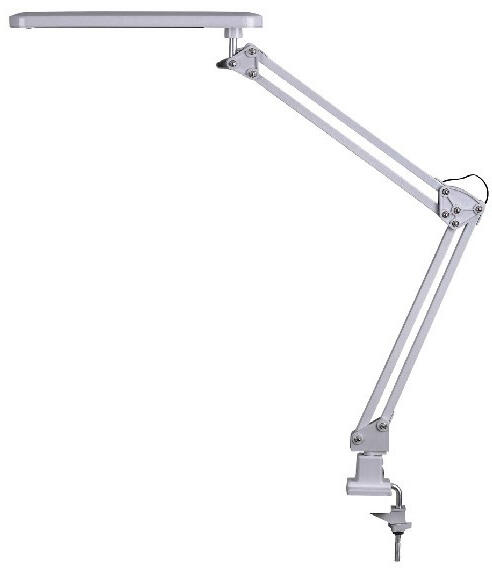Asztali lámpa RÁBALUX Raul LED 5,6W fém ezüst Modern megjelenésű asztali lámpa csavarmenetes, úgynevezett satus rögzítési móddal, beépített energiatakarékos LED fényforrással, 50 cm magassággal, fehér színben. Állítható fém lámpatest és pozícionálható műanyag lámpabúra, tartós kivtelben. A beépített fényforrás 5,6W teljesítmény mellett 350 lumenes fényerőt