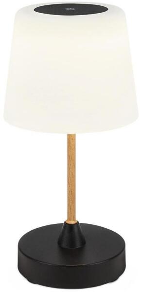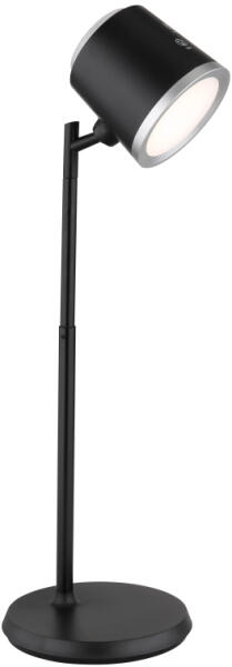 Újratölthető asztali lámpa fekete/ezüst műanyag/alumínium, érintő kapcsoló, dimmelhető, színrögzítés, éjszakai fény, akku:CR18650 1500mAh 3,7V, HxSzxM:157x138x338-446mm, fali lámpaként:SzxM:8,6x14,2cm, Mélység:12,9cm, LED 6W 230V, 12-230lm kimenet, 30
