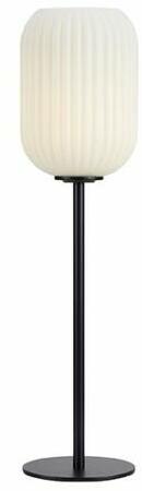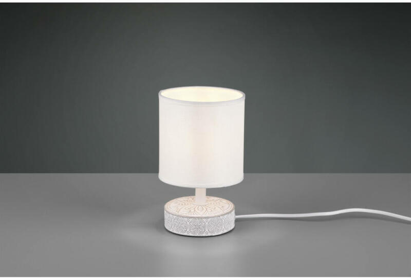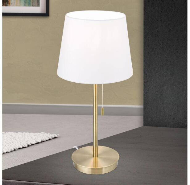 Asztali lámpa textil ernyővel és fém talppal. Alkalmas LED E27 fényforrásokhoz.