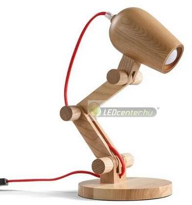 ELEGANT vidám, állítható minőségi fa asztali, olvasólámpa állítható 43 cm-es magassággal, matt lakkozással natúr színben. Minőségi fa alapanyag, tartós kivitel, IP20-as védettség. A lámpatest E27-es foglalatú, bármilyen teljesítményű kisgömb (maximum 40 mm átmérőjű) LED izzóval, vagy maximum 40W teljesítményű halogén, energiatakarékos fényforrással használha