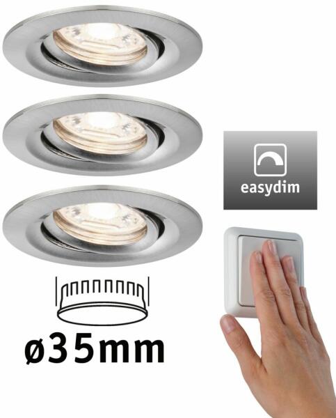 Paulmann 92973 Nova Mini beépíthető lámpa, kerek, 3db-os csomag, fényerőszabályozható, billenthető, szálcsiszolt, 2700K melegfehér, 3x Coin foglalat, 300 lm, IP23