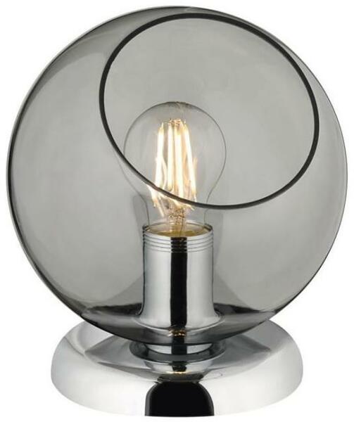 A füstölt üveges asztali lámpa króm és füstölt üveg alapja, szürke szövetárnyalattal rendelkezik. Az asztali lámpa használható modern otthon társalgójában, hálószobájában vagy előcsarnokában.