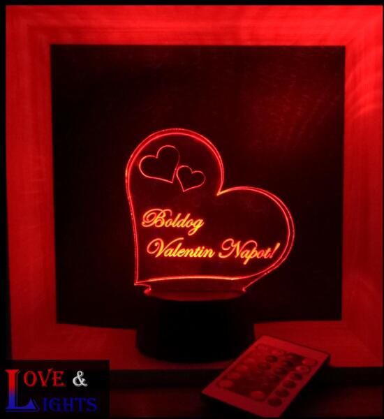 Szív alakú 3D LED illúzió lámparemek ajándék mely használható éjjeli fényként, hangulatvilágításként, dekorációként, akár kültéri világításként napelemes talppal. 3d lámpáink előnyei: különböző színekben világít automatikus színátmenet is beállítható egyedi gravírozású akril lap személyre szabható egyedi felriattal több mint 200 választható lámpa m