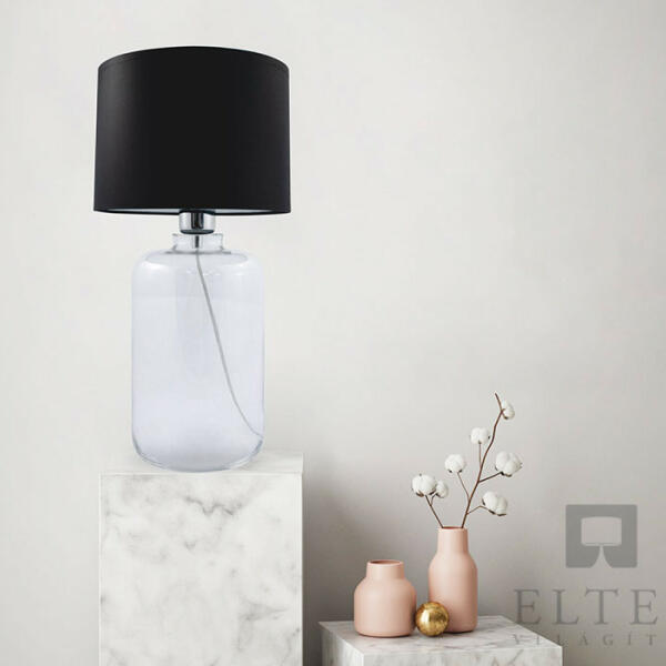 Modern stílusú, szövet ernyős asztali lámpa üveg testtel. Az ernyő kívül fekete, belül fehér színű. A csomagolás a fényforrást nem tartalmazza. Specifikációk:Gyártó: Zuma line Cikkszám:: ZU-5501BK Foglalat: 1 x E27 Méret (ma x sz x mé): 410 x 220 x 0 mm IP-védettség: IP20 Tápfeszültség: 230 Volt Anyag: szövet Stílus: Modern Szín: fekete Maximális terhelhetőség fog