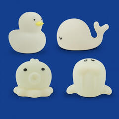 Elemes dekor LED lámpa készlet (0.1W-04W) RGB, IP67, 4 db - kacsa, bálna, rozmár, polip Ez a 4 darabból álló, kacsa, bálna, rozmár és polip alakú dekor lámpa készlet a gyerekszoba és a fürdőszoba kedvenc kiegészítője lehet, vidám, bájos megjelenésükkel mosolyt csalnak az emberek arcára. Éjszakai világításnak is kiválóak, segítségükkel biztonságosan közlekedhetün