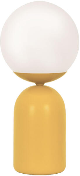 Opál matt üvegbúrával és sárga színű lámpatesttel rendelkező asztali lámpa. Modern és színes kialakítása friss és energikus hangulatot teremt bármely helyiségben. Tökéletes választás dinamikus és stílusos világításhoz...